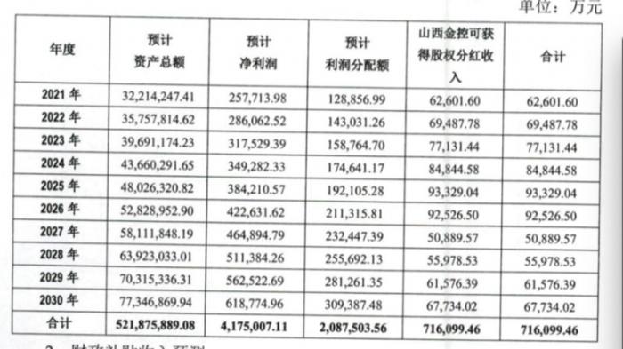财政补贴方面,山西金控将按照山西银行经营情况申请财政补贴款,预计10 年内可取得财政补贴收入35.07 亿元;