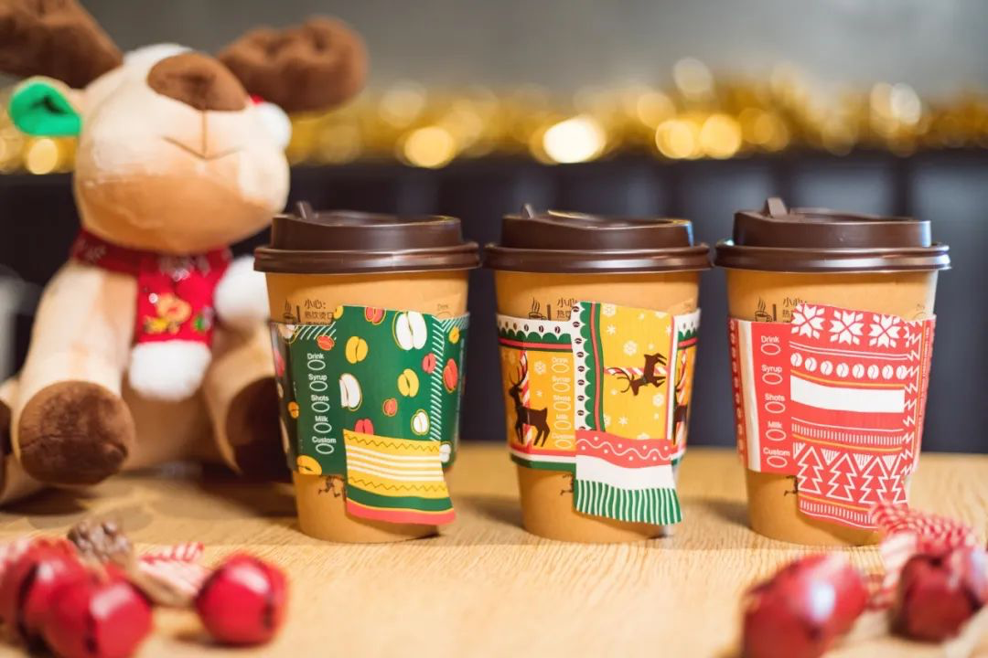 有给瓶子戴帽子的,就有给杯子围围巾的。麦当劳的麦咖啡,则是自带圣诞围巾,还有不同的花色。