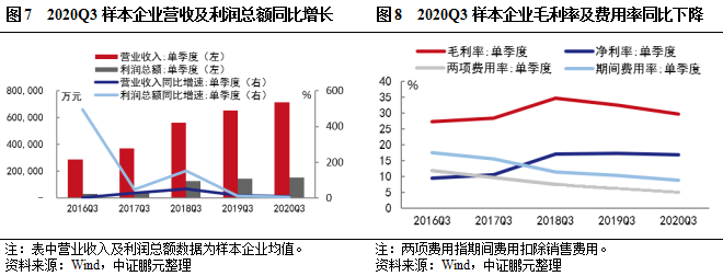 整体来看,得益于下游需求修复,2020Q3样本企业经营总体向好,前三季度营收均值同比增速较上半年首次回正;分区域来看,华东地区水泥价格优势带动当地企业营收等快速增长,西南雨水及新疆疫情拖累西南及部分西北企业业绩;同时,海螺水泥等行业龙头优势进一步凸显,预计行业龙头为主的样本企业盈利优势可贯穿全年。