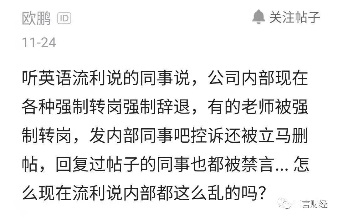 除了上述爆料,此外在上个月底就有人爆料流利说强制员工转岗、辞退。