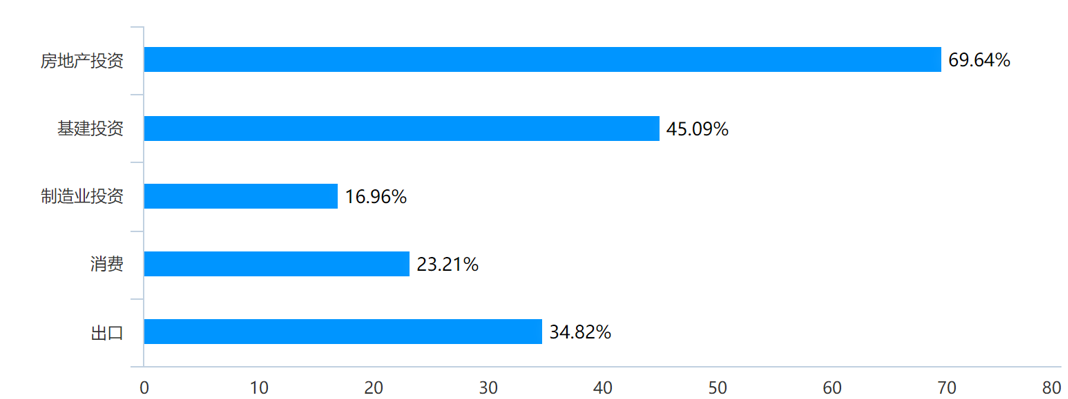 近七成受访者认为明年房地产投资是导致经济下行的主要风险来源,其次是基建和出口。认为下行风险来自消费和制造业投资的受访者占比较低。