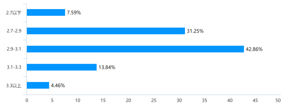过半受访者对明年10年期国债利率的高点预期位于3.3%-3.5%区间,超四成受访者对低点的预期位于2.9%-3.1%区间。