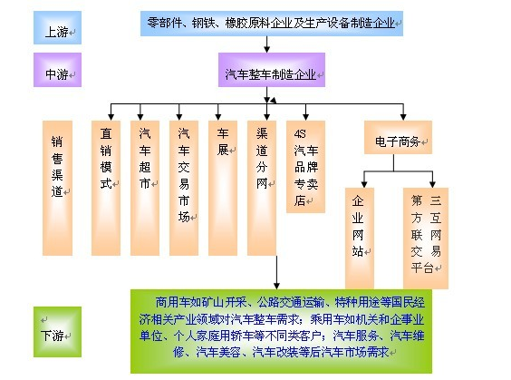 汽车行业,一般是指其汽车产品或具有相同工艺过程或提供同类劳动服务划分的经济活动类别。包括汽车生产、销售、售后、美容等增值服务的总体。是指在国民经济中从事汽车生产或者与其相关的经济社会的经营单位或者个体的组织结构体系所共同组成的行业总称。生产销售汽车整车及提供相关服务的行业,包括乘用车、客车、货车、特种车生产与销售及汽车服务。