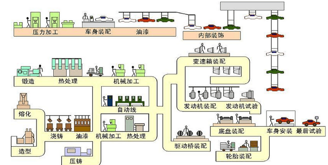 汽车生产流程依次分为铸造、锻造、冷冲压、焊接、金属切削加工、热处理及装配环节。纵观整条产业链,成本强势,需求强势:对上游谈判能力均较弱,但对下游谈判能力稍强,行业总体利润空间较小。