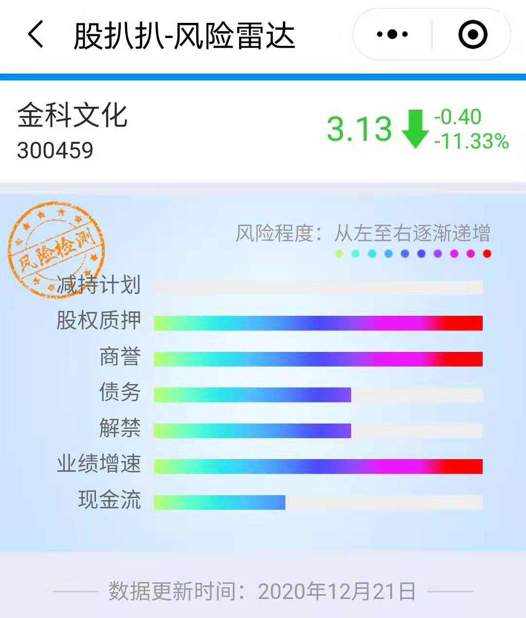 从股扒扒程序中,我们可以看到金科文化存在的一些风险。
