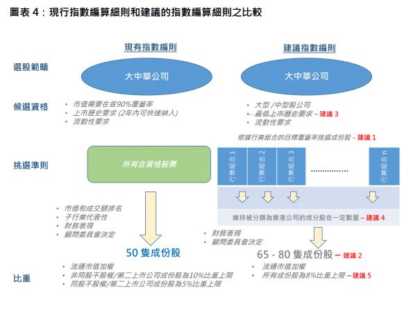 恒生指数公司12月22日晚间,宣布启动市场咨询,针对恒指成份股进行重大改革。咨询文件共提出五项改革建议,将成份股数目由目前52家增加到65至80家,并按行业组合挑选股份;所有成份股权重不分股权架构上限统一为8%,并取消最低上市时间要求等。