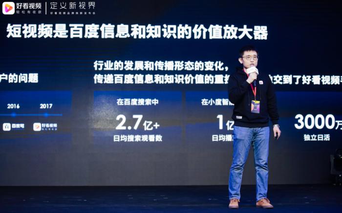 目前来看,百度知识视频的思路在一定程度上得到验证。据宋健介绍,今年打出知识视频的定位之后,好看视频各方面数字保持增长。其中,百度搜索中超过2.7亿次导入好看视频,小度智能硬件中超过1亿次日均播放量,独立APP日活3000万,全域日活1.1亿人次。
