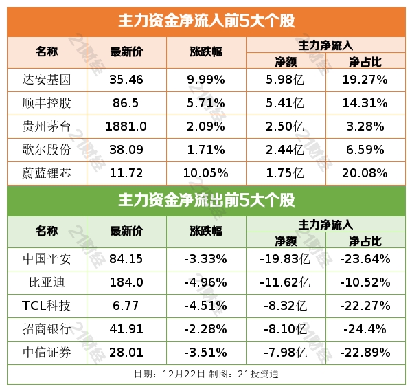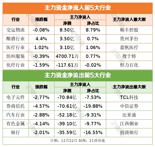 12月22日,北向资金净卖出35.86亿元,其中沪股通净卖出3.21亿元,深股通净卖出32.65亿元。增持材料行业,减持汽车行业。
