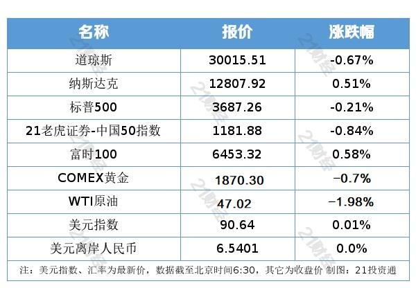 美股收盘涨跌互现,道指跌逾200点;激光雷达概念股走高,抗疫概念及白银股下挫。金价、油价均下跌。