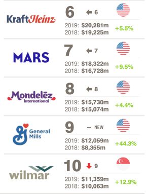 13 | 卡夫亨氏 | 24977 | 38 | NH Foods | 10878 |