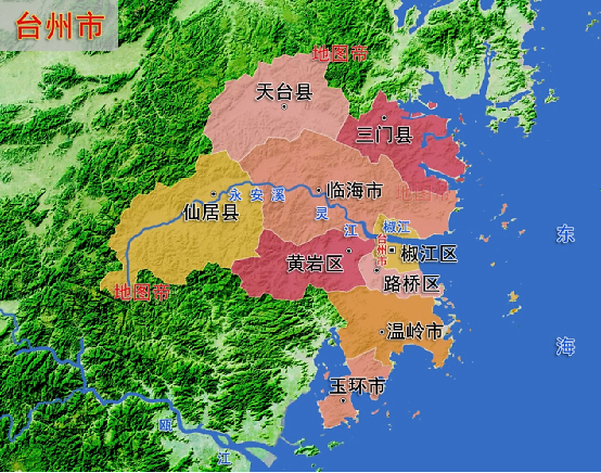 台州也有非常悠久的历史,春秋时期属百越——瓯越之地。秦统一六国后,台州境属闽中郡。西汉始元二年(公元前85年),置回浦县,是为台州建县之始,唐武德五年(622年)置台州,以境内有天台山而得名,台州之名自此始。从唐朝开始,台州一府六县的大体格局基本上定下来了。六县是宁海县(今属宁波市,当时包括今三门县)、天台县、临海县、仙居县、黄岩县、太平县(今温岭市)。明朝时为防备倭寇侵袭沿海,设松门卫(在今松门镇)和海门卫(在今椒江区)两卫,筑卫所城,征兵戍守。负责这个备倭工作的是朱元璋的老乡开国名将汤和,后来被追封为东瓯王。解放后,台州、温州、宁波三地区之间的辖县多次变更,最终形成如今的格局。