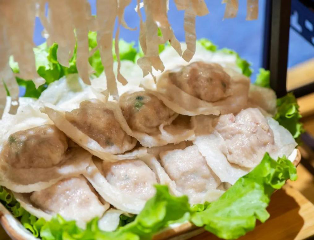 玉环人的餐桌也离不开鱼皮馄饨。挑选新鲜的鱼,剔骨剩下鱼肉,一边敲打,一边撒上少许面粉,最终敲成圆形;再将调好的猪肉馅料包进鱼皮里,捏成馄饨样,鱼皮馄饨可清蒸也可水煮。
