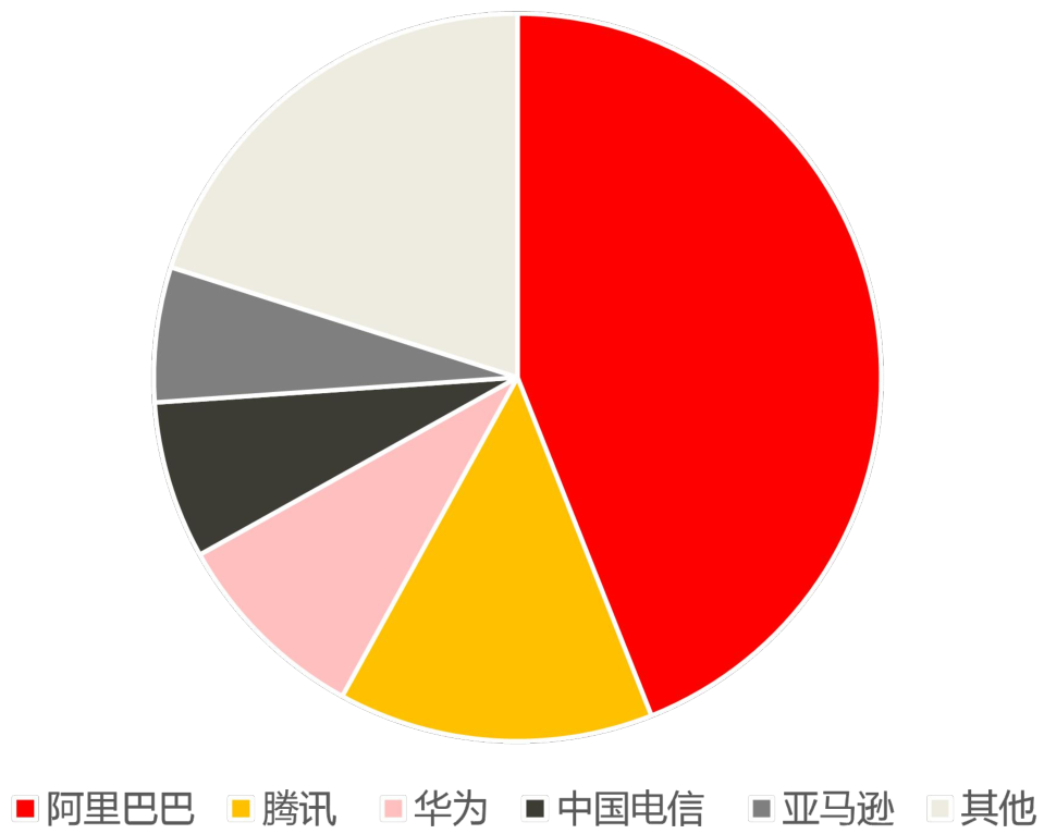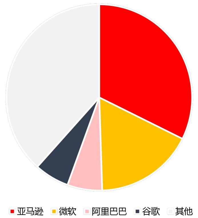 无论是国内还是国外市场,IAAS产业都体现出集中度高的特性。IDC的数据显示,2020年一季度,国内IAAS排名前三的厂商阿里巴巴、腾讯、华为的市占率分别是44%、14%、8.9%,合计占比达到65%。放眼全球,Canalys的数据表明,亚马逊、微软、阿里巴巴的合计市占率占比达到55%。
