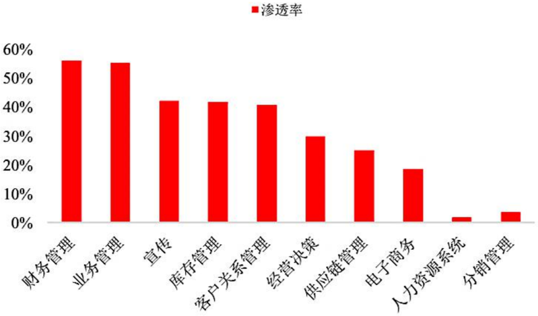 相比美国,中国的企业信息化建设进程滞后明显,据工商局统计,我国小微企业占比超过80%,而这些占比最大的小微企业,其信息化程度非常落后。36氪的数据显示,国内90%的小微企业信息化程度较差。