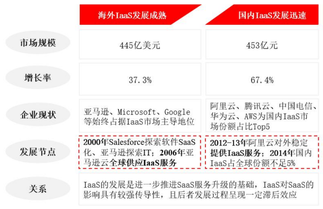 虽然都是云计算行业的核心, 但在产业形态上,SAAS和IAAS具备较大的差异性。