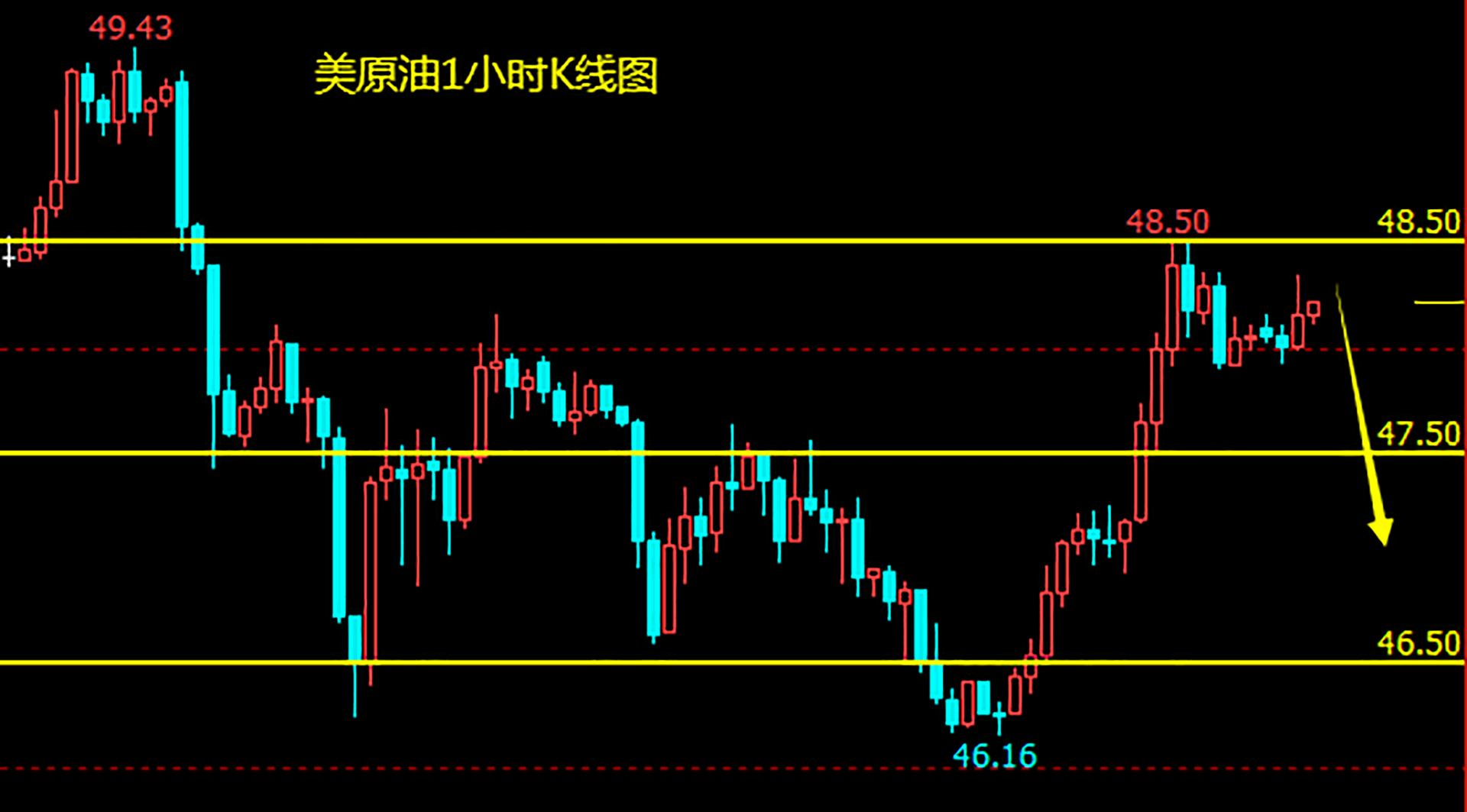 美油短期压力位位于48.50一线(前期高点附近)、短期支撑位位于47.50一线(震荡区间的中线位置)、46.50一线(前期低点附近)。