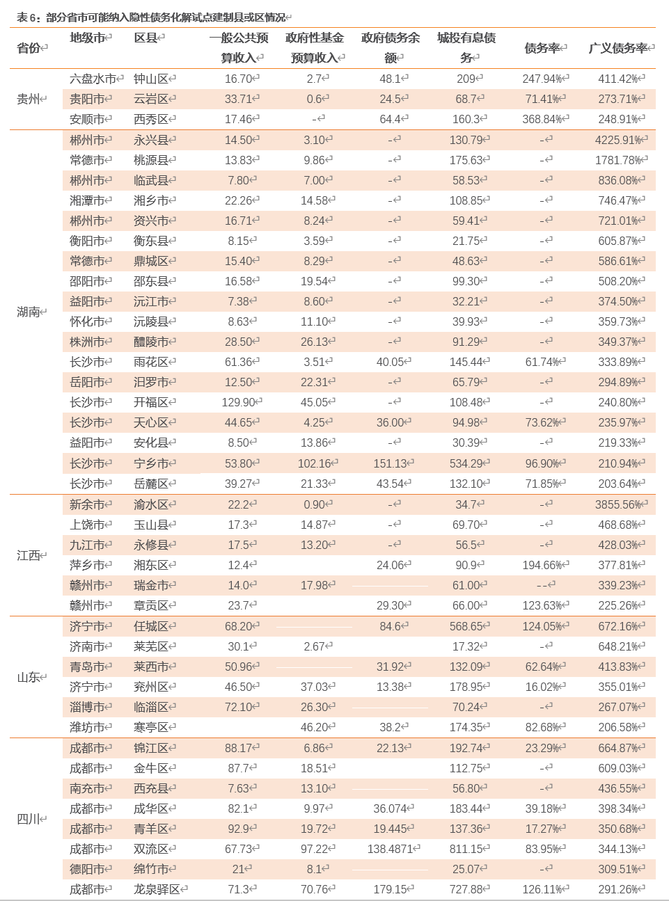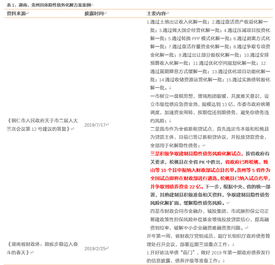 (1)2020.7.29,四川省第十三届人民代表大会常务委员会第二十次会议上,四川省财政厅厅长提到:“积极争取将省内部分地区建制县纳入隐性债务化解试点”。