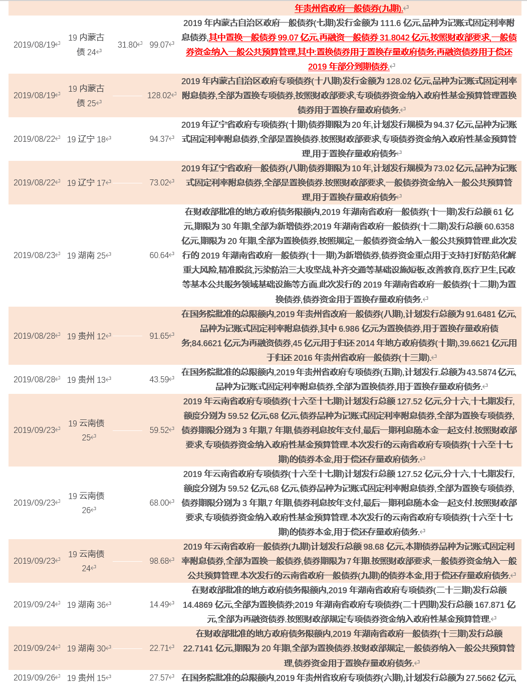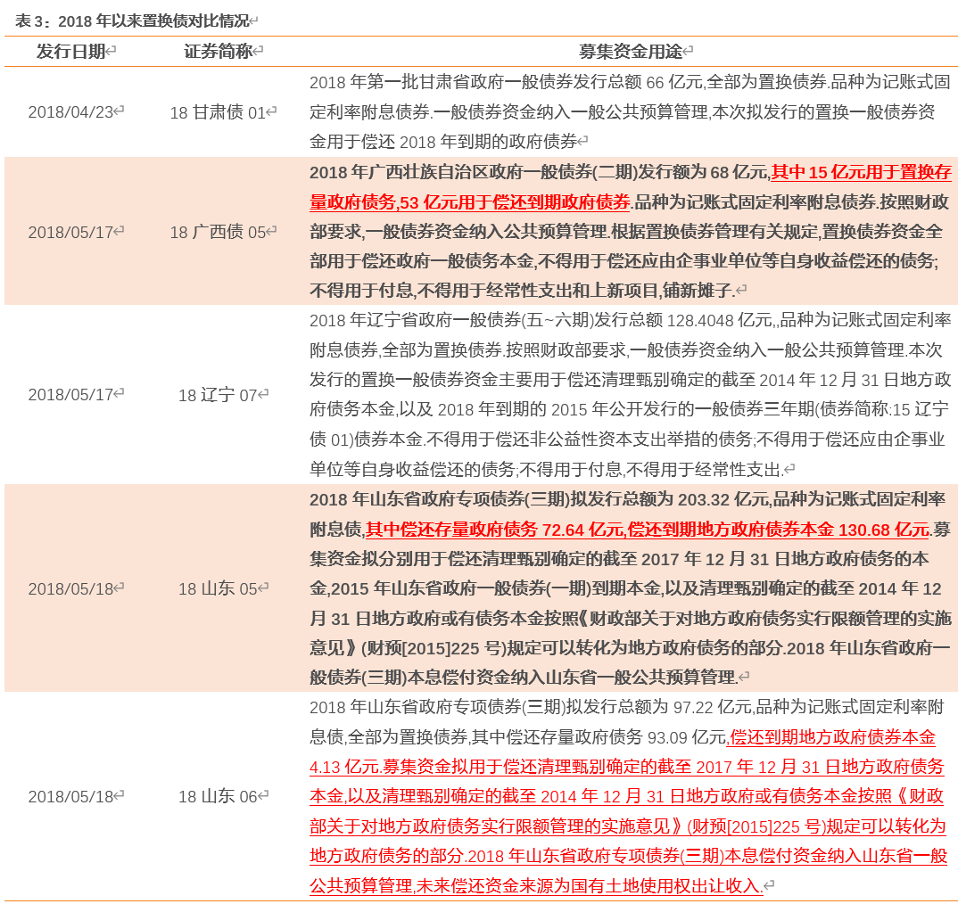 此次有所变化的是以再融资债的名义发行,当中囊括了一部分偿还存量政府债务的资金,根据财库〔2018〕61号规定,地方政府债券用于偿还当年到期地方债的规模上限,按照地方政府申请发债数与到期还本数孰低的原则确定。那么存在一个问题,以前年度的再融资债是否有同类的情况?