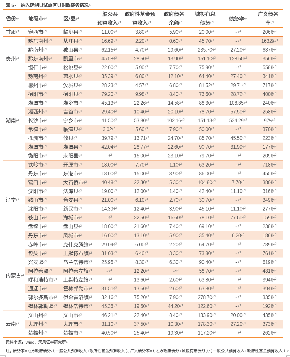 那么由此推测,还有哪些建制县或区可能纳入?首先从前期已有纳入的省份以及其他尾部区域中筛选,以下区县或可重点关注,区域内平台主体可多关注其边际变化,尤其是拿到地方政府置换债券的情况: