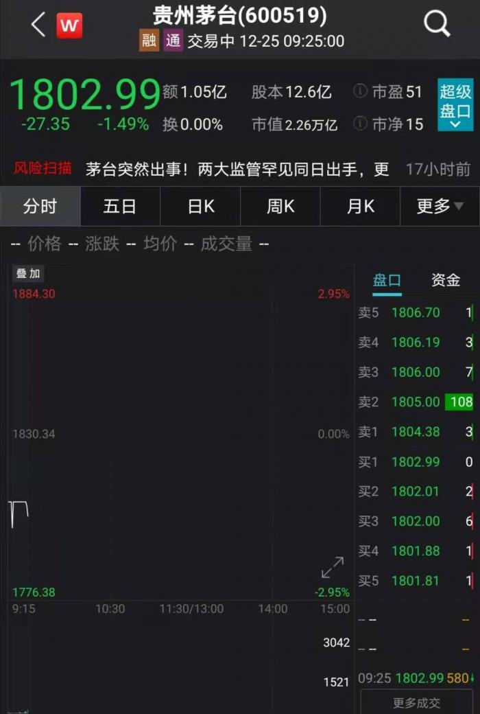 12月25日,沪指低开0.34%,创业板指跌0.33%。白酒股领跌,茅台跌近1.5%,青青稞酒继续跌停。