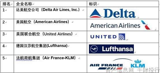 图 全球航空公司规模前五位