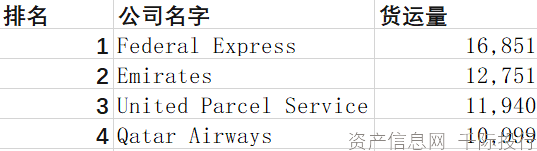 图为全球航空物流排名: