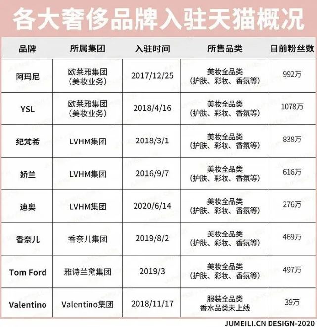 12月21日,Gucci天猫官方旗舰店正式开业,涵盖手袋、皮具、鞋履、成衣、配饰、腕表首饰等数百种全系列商品,截止目前,粉丝数已经超过9万。另外,Gucci美妆天猫官方旗舰店则将于2021年2月上线。
