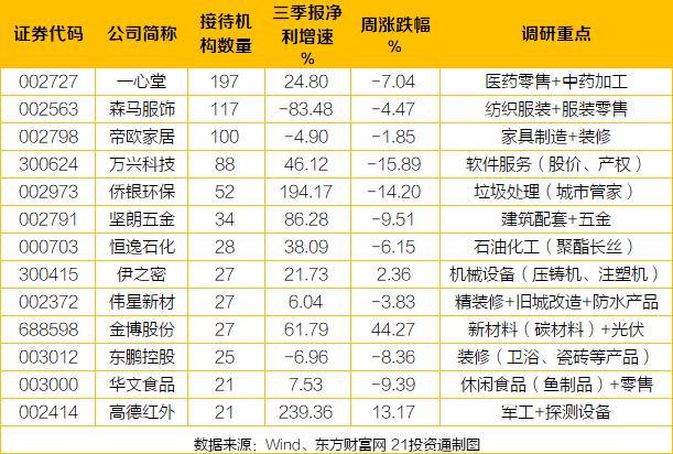 接待机构数量方面,医药零售股一心堂(002727.SZ)最受机构关注,被中信证券、华夏基金、南方基金、云锋基金、东方证券、国泰君安、海通证券、光大证券、交银施罗德、景林资产等197家投资机构扎堆调研。此外,森马服饰(002563.SZ)、帝欧家居(002798.SZ)也被100家及以上机构扎堆调研。