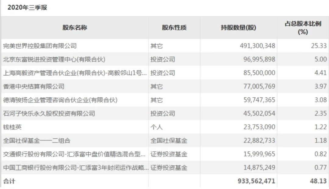 资料显示,高毅邻山1号远望基金自今年一季度新买入完美世界后,持续加仓。截至三季度末,已加仓至8550万股,占上市流通股比重的4.78%。另外,游族网络也是冯柳的重仓股,高毅邻山1号远望基金二季度末成为该股第十大流通股股东后,已维持仓位至三季度末。