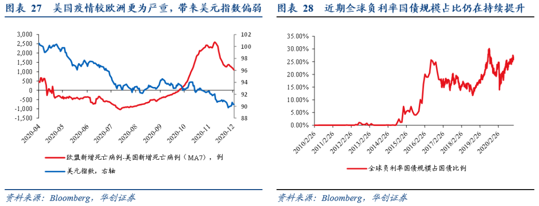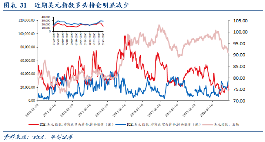 美元指数在近期欧洲疫情防控(欧盟新增死亡病例显著少于美国)与经济表现(花旗欧洲经济意外指数显著走高,而美国则平稳)均好于美国的背景下,表现整体偏弱,近2周美元指数下跌0.83%,为全球主要资产中表现最差的品种,同时近期美元指数多头持仓显著减少,市场看空美元预期一致性较高。