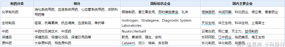 制药行业主要可以分为原料药、化学制剂药、生物制品、中药以及保健品。其中,中药是我国古代优秀文化遗产,现在传播到东南亚国家,甚至影响到了欧洲与北美洲。