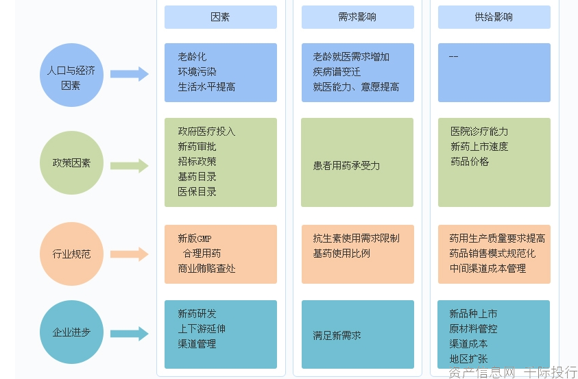 人口和经济是制药行业的根本推动因素。同时,由于药品使用的专业性、对于人民生活具有重大影响,医药行业受到国家政策高度影响。对行业本身存在的个别不规范问题的修正,也会对行业的局部供求关系产生影响。对于企业来说,品种的市场空间和定价能力,加上渠道管控能力,是影响企业长期发展状况的核心因素。