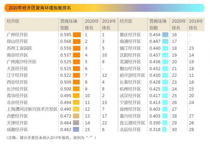 1.全国经开区营商环境指数:广州经开区第一、昆山经开区第二、苏州工业园区第三