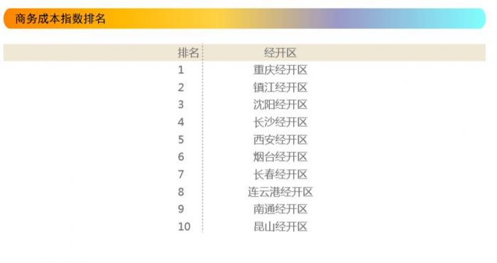 而来自杭州、天津、广州、上海、北京等城市的经开区,商务成本水平都相对较高。