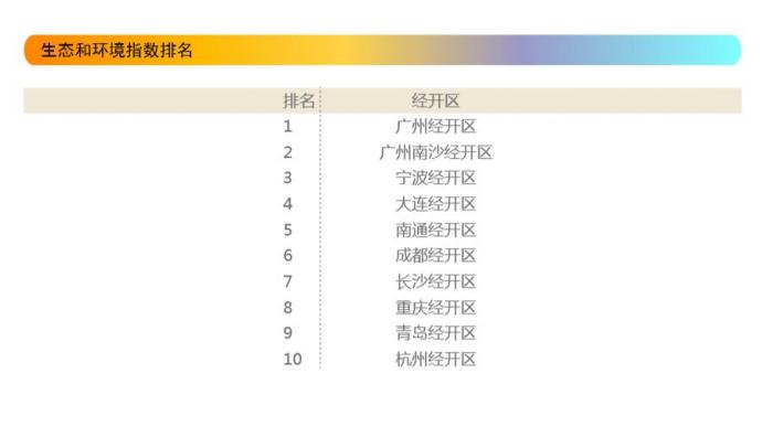 5.生态环境指数:广州经开区、广州南沙经开区、宁波经开区、大连经开区、南通经开区位居前五