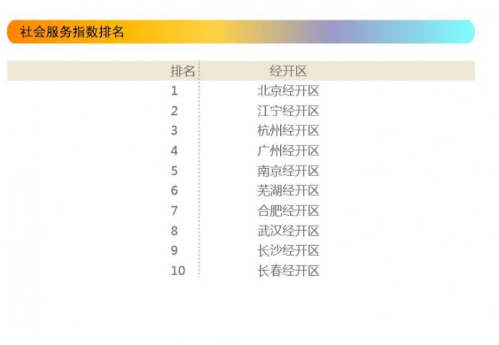 结果显示,北京经开区、江宁经开区、杭州经开区、广州经开区和南京经开区成为社会服务指数的前五位。而在科研强度和新增孵化器数量上,北京经开区和广州经开区位列榜首,来自教育重镇南京市的江宁经开区和南京经开区则在高校在校生与常住人口之比上领先其他经开区。