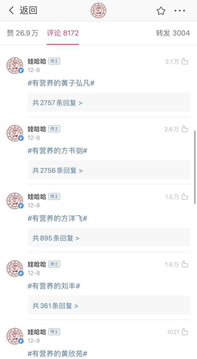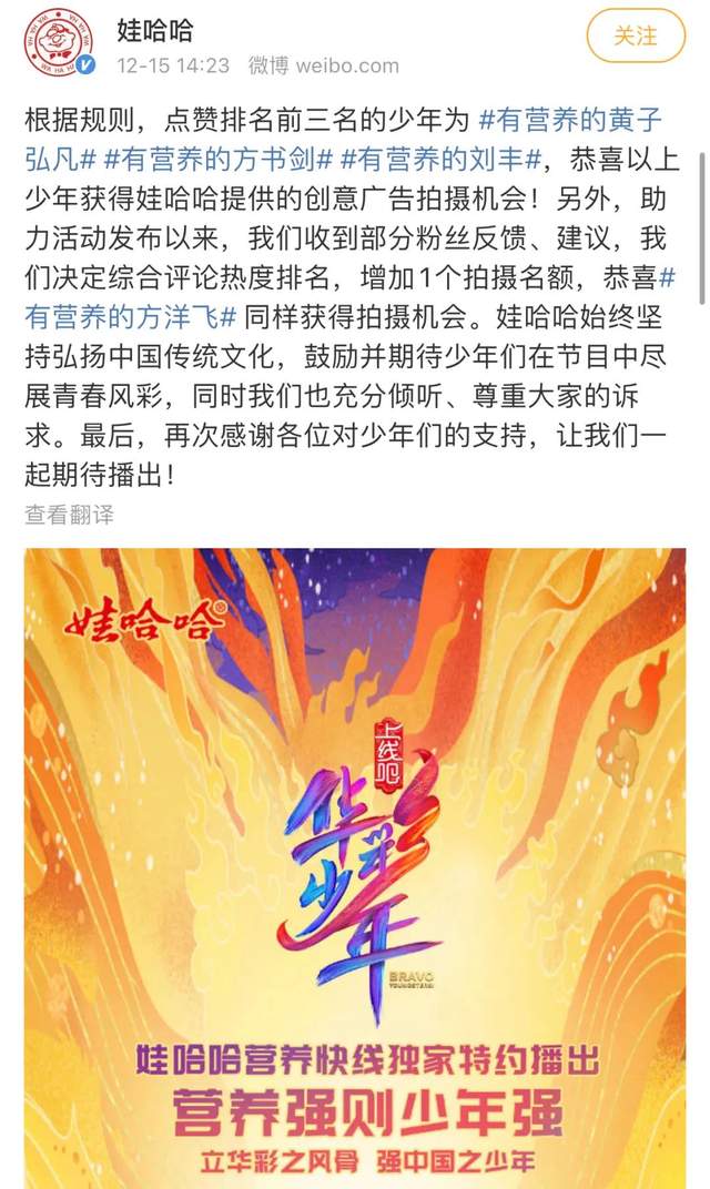 他们正在积极地为选手们点赞、刷评论、抡数据、创话题,引得娃哈哈都架不住这种热情,在原本拍摄广告的3个名额上再加一位。