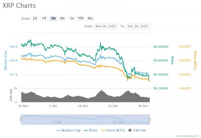 该公告发布后,瑞波币价格从0.28美元跌至0.23美元附近。自上周SEC发起诉讼以来,瑞波币价格已经下跌了50%以上。