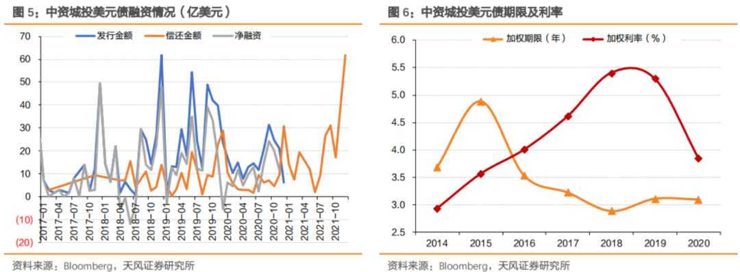 城投融资成本显著下降。城投美元债发债主体信用评级整体较高,相比于之下本身受疫情影响较小,疫情冲击最大的3~5月仍然实现了较高的发行和净融资,在美联储维持较低利率的情况下,融资成本大幅下降。