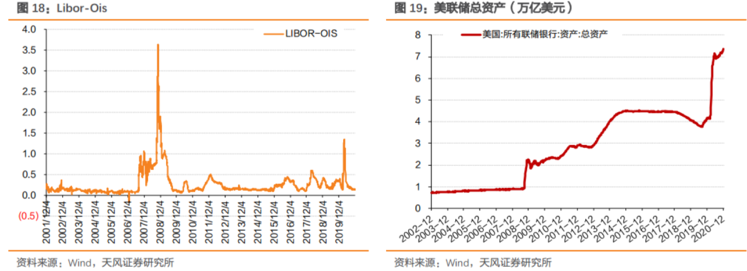 在较强的不确定性下,美联储选择继续维持宽松的货币政策,并可能还将持续一段时间。2020年12月17日美联储议息会议声明,将联邦基金利率维持在0%~0.25%的目标范围内不变。此外,还给出了明确的购买美国债券的信息:每月将增持至少800亿美元的美国国债,400亿美元的抵押支持证券(MBS),根据需要购买CMBS。财政政策方面,美国国会已经批准了9000亿美元的抗疫救助刺激方案,目前特朗普已签字批准。而目前美国因为疫情而产生的大规模赤字,进一步加剧了政府的债务负担,这可能也将限制美联储的货币政策收紧。