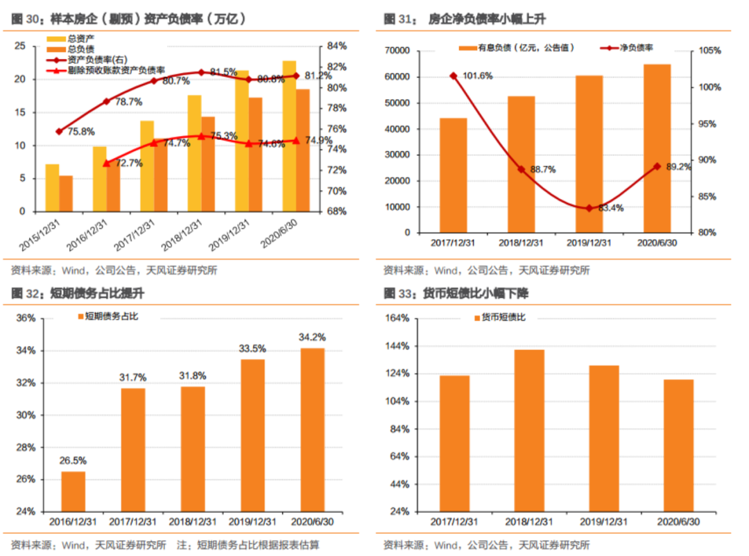 从房地产行业来看,房企基本面相对平稳。长期偿债能力方面,近几年房企的资产负债率、剔除预收账款的资产负债率、净负债率等都有小幅下降,“三道红线”政策出台,房企的债务扩张受到限制,企业预期重塑,行业风险可控性增强。短期来看,房企短债占比小幅提升、货币短债比略有降低,但仍处于相对安全的水平。