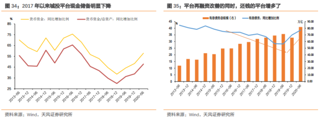 从城投来看,债务压力并未下降,但再融资政策相对稳定。城投企业对再融资依赖度较高,虽然同时可以观察到城投的有息负债规模增速有明显提升,债务压力加大,城投企业的信用资质难言改善,但是再融资政策保持稳定,特别是近期再融资地方债的发行,无论多少是一种正面支持。