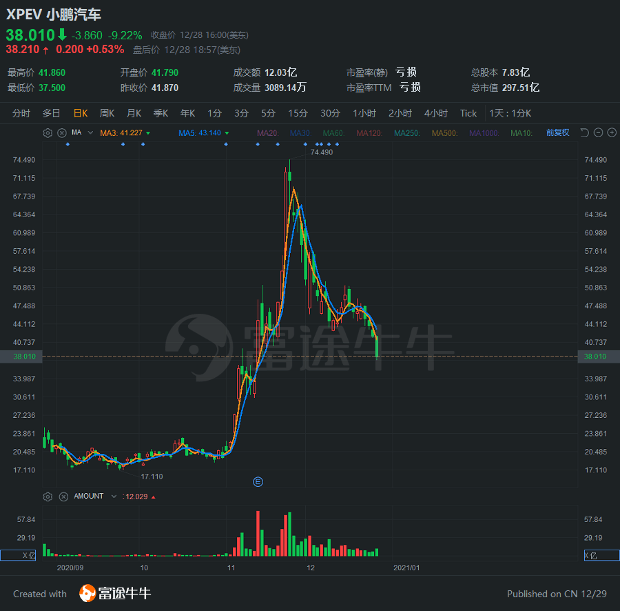 中概造车新势力齐跌。蔚来汽车跌3.7%,但今年累涨近11倍;小鹏汽车跌超9%,上市以来较15美元发行价累涨153%,不过距离11月24日高点已回调近50%;理想汽车跌近8%,上市以来较11.50美元发行价累涨135%。