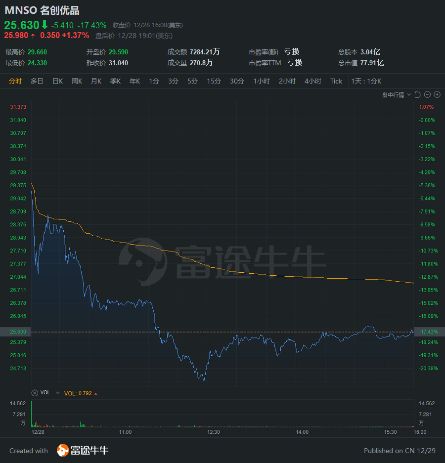 12月28日消息,针对火热的盲盒产品,新华社发文指出,监管部门应进一步规范盲盒经营模式。周一美股名创优品(MNSO.US)盘中一度跌超20%,最终收跌17%。