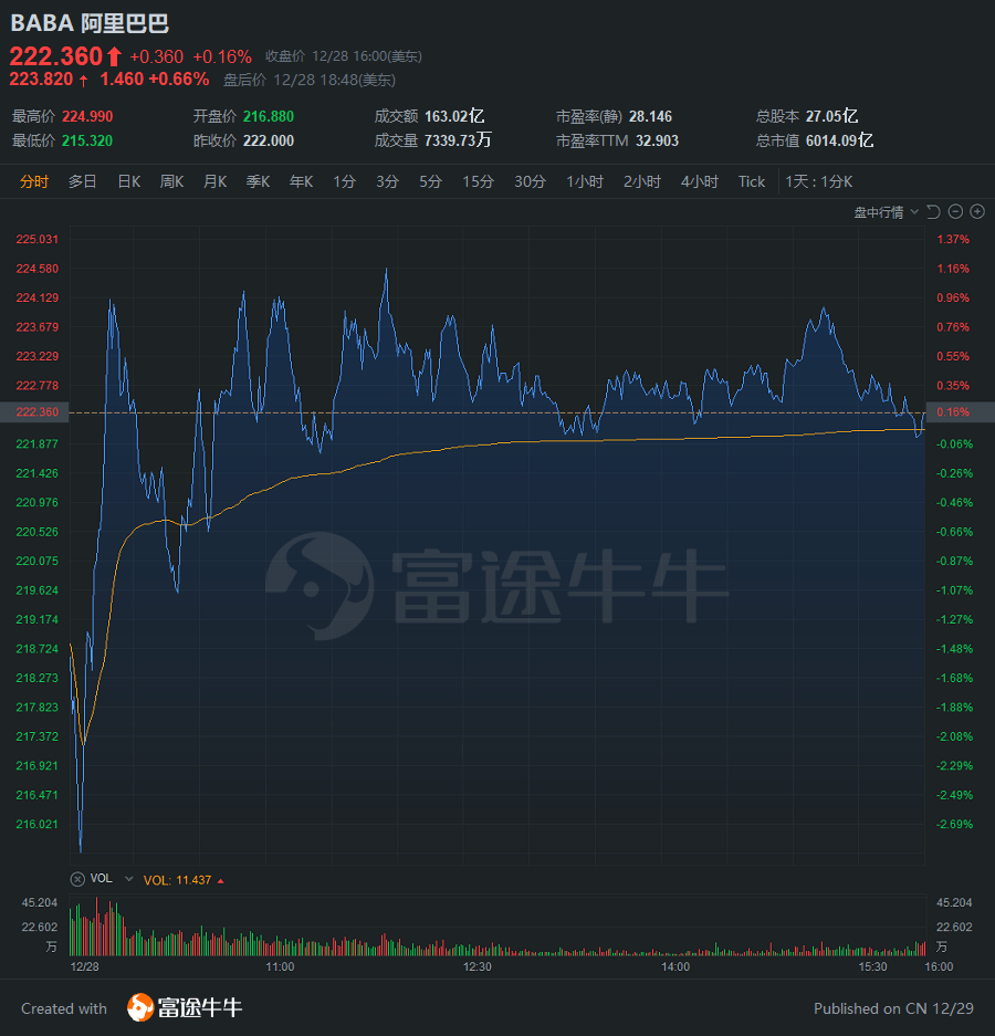 1、阿里巴巴美股收涨0.16%,回购规模扩大至100亿美元
