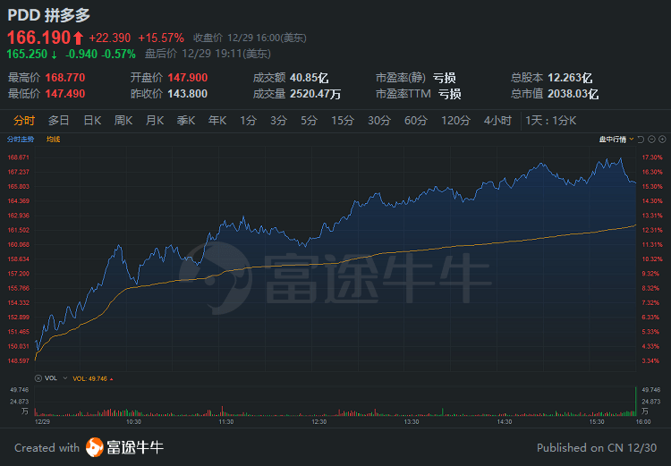 拼多多大涨15.6%、市值破2000亿美元,京东涨超5%;