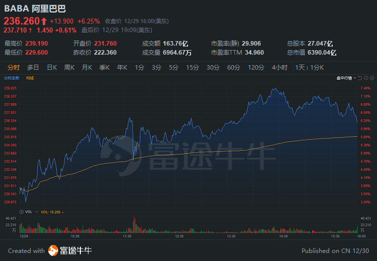 周二阿里巴巴(BABA.US)股价一路上扬,盘中最高涨超7%,刷新7月以来盘中涨幅新高,截止收盘,阿里股价收涨6.25%,报236.26美元。收复12月23日以来近半跌幅。此前公司宣布宣布增加回购总额至100亿美元。