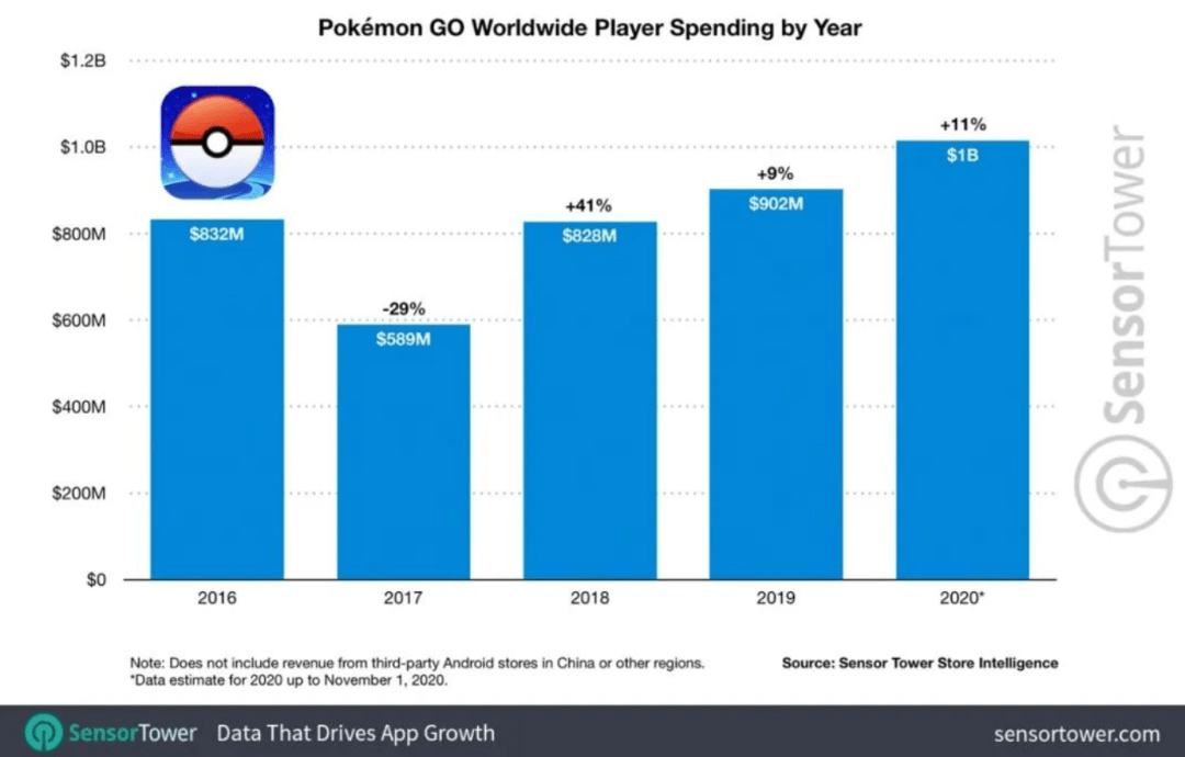 对于《Pokémon GO》能够在2020年进入“十亿美元俱乐部”还是一件令人挺意外的事情,毕竟这是一款主打ar和lbs的移动游戏。从2020年《Pokémon GO》的更新情况来看,很大部分归功于Niantic及时对游戏内容的调整。