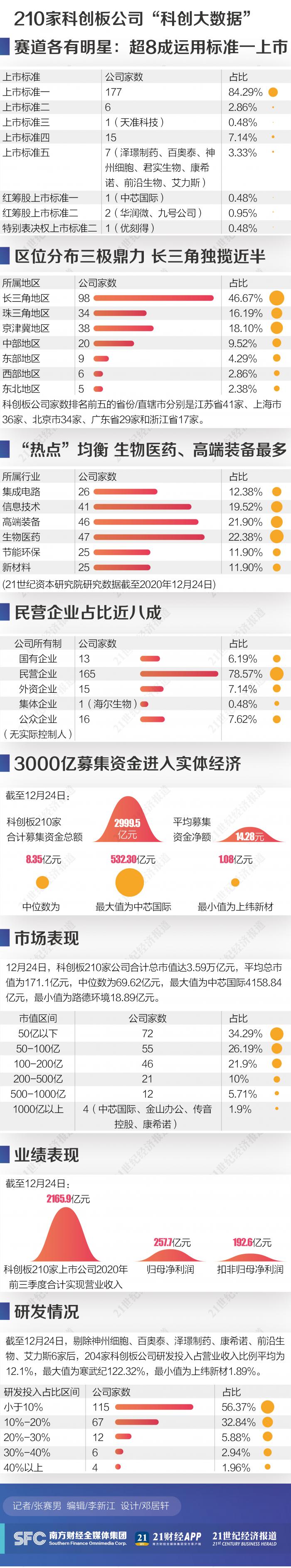 21世纪经济报道记者对这210家公司进行全景式扫描,同时,采访了多家科创板公司掌舵人,了解科创板对企业科技创新的推动作用、企业如何利用科创板继续做大做强。