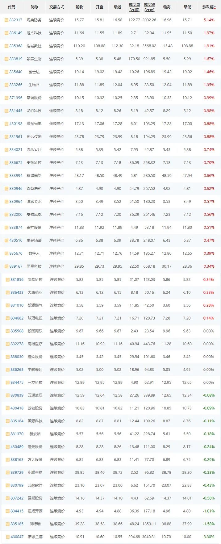 截至12月31日收盘,今日成交金额为5.92亿元,精选层成交金额为1.70亿元,创新层成交金额为2.57元,基础层成交金额为1.65亿元;今日成交股数为11285.42万股,精选层成交股数为1304.37万股,创新层成交股数为6495.94万股,基础层成交股数为3485.11万股。